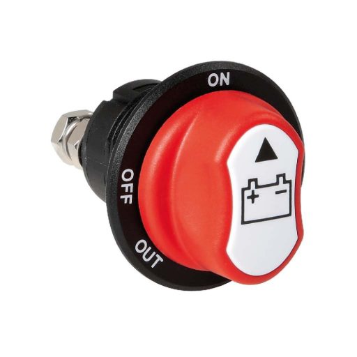 Kis akkumulátor leválasztó, kivehető valásztó darabbal. Három funkció - opció ON, OFF, OUT. Óvja az akkumulátorokat a kisütés során hosszabb ideig nem.