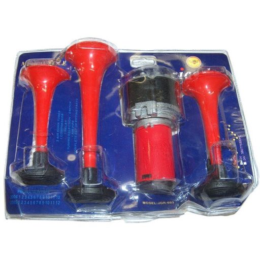 Autólégkürt (3 szólamú) kompresszorral 12 V. Csomagolás: bliszter. A csomagolás tartalmaz relét.