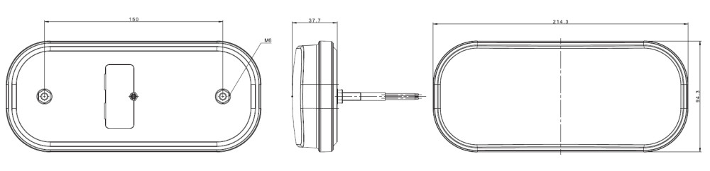 Méretek: 214,3 x 94,3 x 37,7 mm, furattávolság M6 - 150 mm