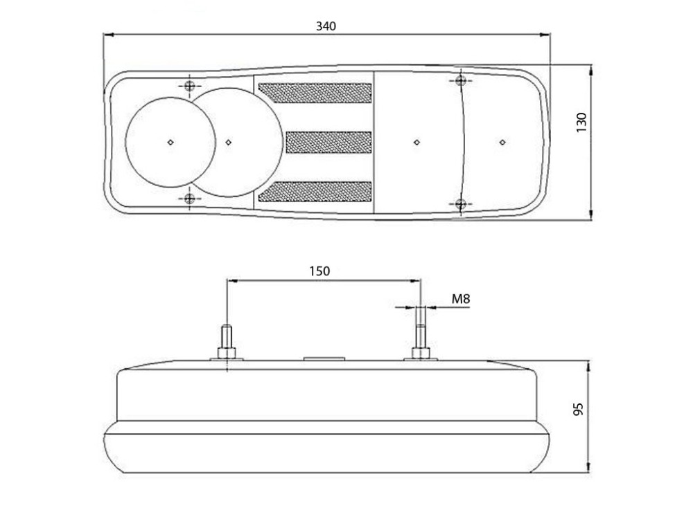 Funkciók: irányjelző, féklámpa, helyzetjelző, ködlámpa, tolatólámpa, rendszám világítás alulról