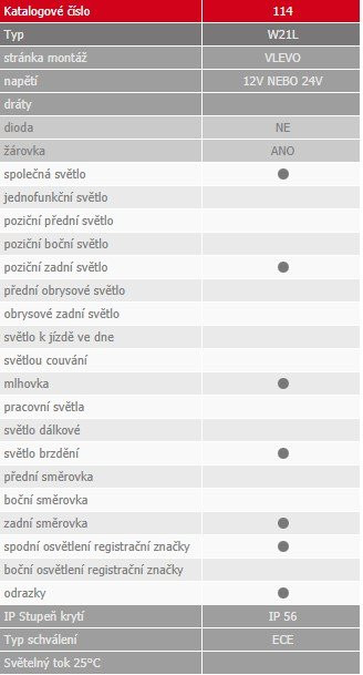Egyesített lámpa W21L (114) ködlámpával és rendszám világítással