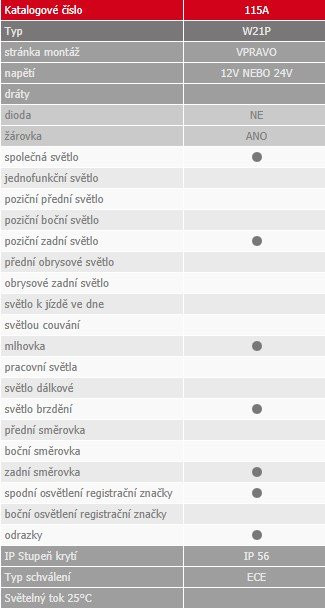 Egyesített lámpa jobb W21L (115A)