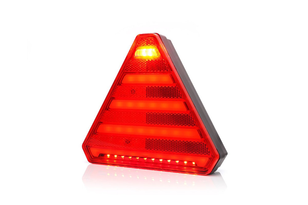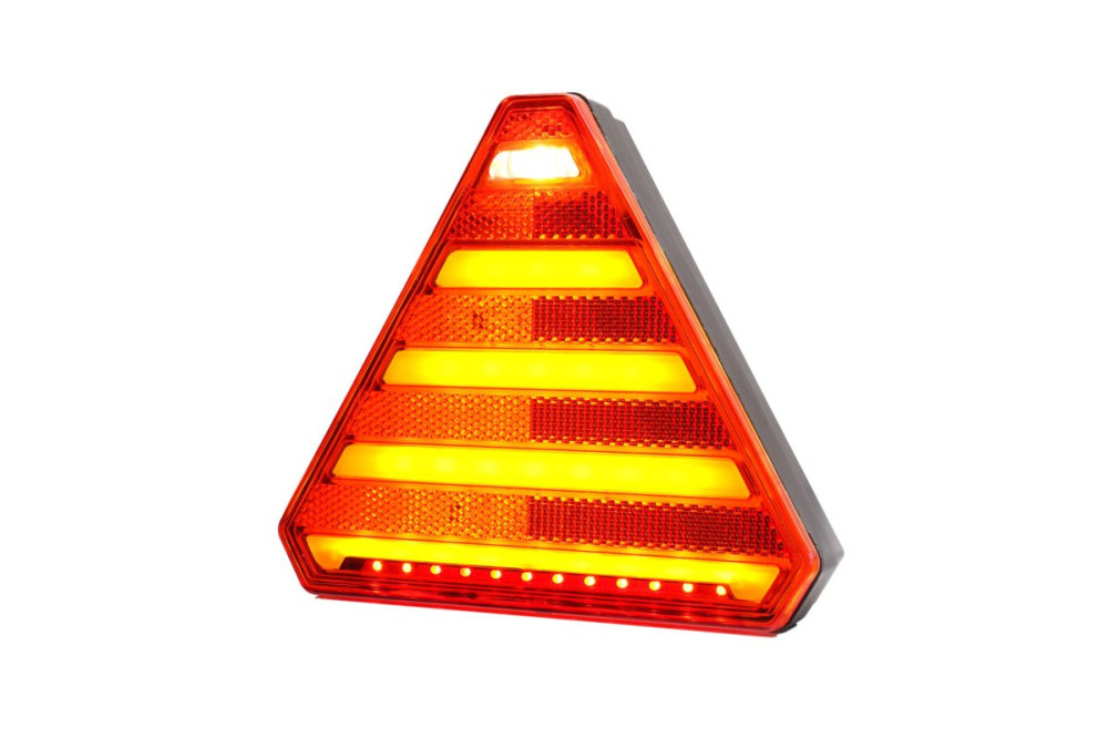 Leírás: A kompakt háromszög alakú egyesített hátsó lámpa, amely kis lámpatestben egyesíti az összes szükséges funkciót, teljesen megfelel mind a kis utánfutókra, mind a nagyobb pótkocsikra.