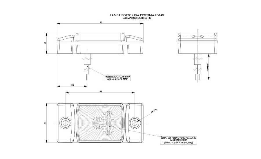 HORPOL LED marker light - HOR40 LD140 fehér 12/24V ECE - WMLHOR140