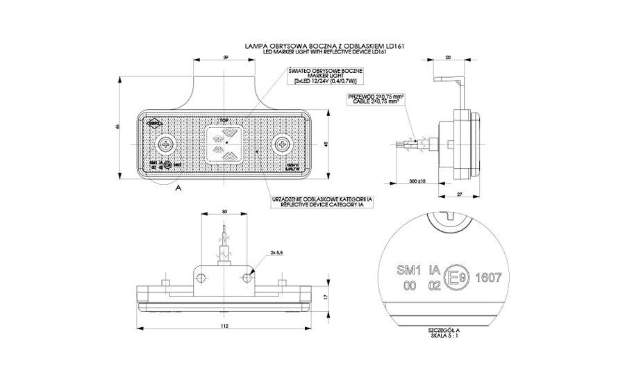 HORPOL LED marker light - HOR42 LD161 narancs with reflector, hanging 12/24V ECE - WMLHOR161