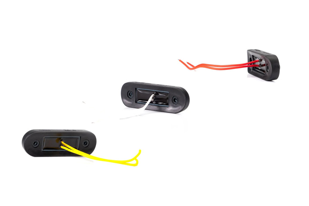 Leírás: Ez a népszerű LED helyzetjelző lámpa kompakt méretben DARK kivitelben kisteherautókhoz és teherautókhoz. A sötétített felső burkolattal, elegáns és modern megjelenésű, de ez a módosítás nem befolyásolja a fényerőt. A lámpa az autó karosszériájának formáját másoló műanyag házba került, és a csavarokat burkolatokkal is ellátták, amelyek biztosítják a csavarok nélküli sima megjelenést. Három színkombinációban, fehér, piros és narancssárga változatban. Négy kiváló minőségű dióda nagyon fényesen világít, a fénysugár szükségtelen szétszóródása nélkül. Ellenálló, ütésálló műanyag, alacsony fogyasztás, mindössze 0,05 A