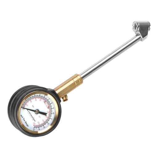 A 15 cm hosszú cső és a forgófej megkönnyíti a nyomás mérését a nehezen elérhető gumiszelepekben.