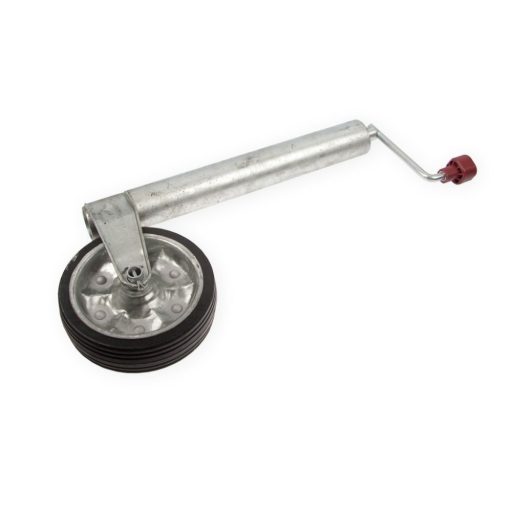 Ez a támasztó manőverező kerék ideális segédeszköz az utánfutó könnyű kezeléséhez. Használatával az utánfutó mozgatása rendkívül egyszerűvé válik. A kerék visszahúzható, ami egyszerű és gyors felszerelést tesz lehetővé. Felhívjuk a figyelmet, hogy a bilincset a csomag nem tartalmazza.