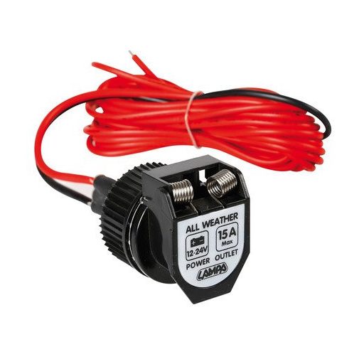 Külső időjárás álló fedeles szivargyújtó aljzat. 12/24V - max. 15A. 3,6 méter vezetékkel