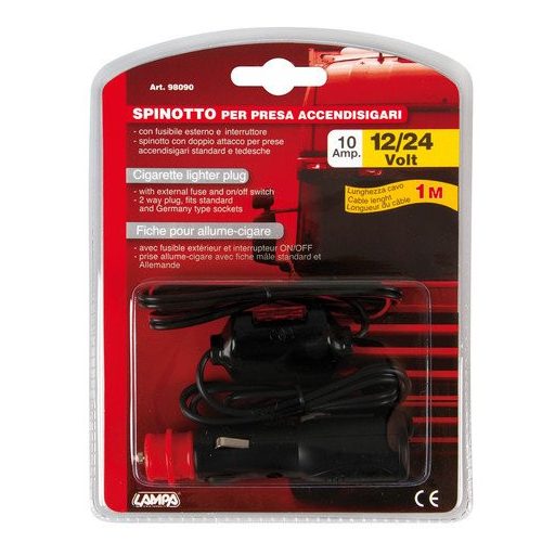 Kapcsolóval szerelt szivargyújtó dugó 12/24 V. Megvilágított kikapcsolóval,biztosítékkal ( 10A). 100 cm kábel