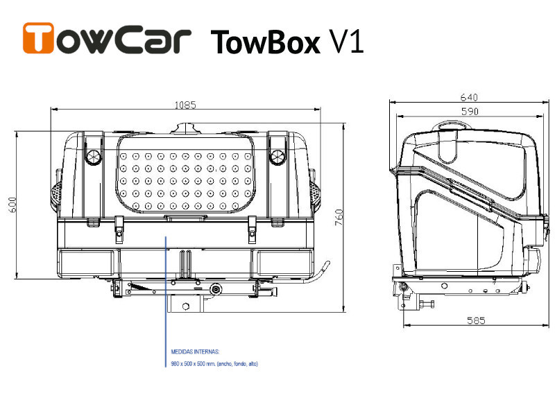 A TowBox nagyszerű megoldás olyan magas autókhoz, amelyeket nehéz a tetőre rakodni, vagy olyan autókhoz, amelyeket nem tetőcsomagtartóval való használatra terveztek (Tesla Model-S). -Mivel a doboz nem növeli a jármű magasságát, így a garázsba való bejutás minden gond nélkül lehetséges. -Teljes világítás tolató- és ködlámpákkal. -Elektromos telepítéssel együtt (13 tűs). (13/7 tűs adapter mellékelve). -A doboz különálló műszaki egységként van jóváhagyva, így nem tartozik az STK-ellenőrzés hatálya alá. EK-típusjóváhagyás. -Kompatibilis a piacon kapható legtöbb vonóhoroggal. -Méretek: 1085x755x640. (Hosszúság x szélesség x magasság). -Súly: 26 kg. -Feszültség: a TZ függőleges terhelése (pl. 100 kg) - a doboz súlya (26 kg) = pl. 74 kg. -A telepítés egy személy által néhány másodperc alatt könnyen elvégezhető.